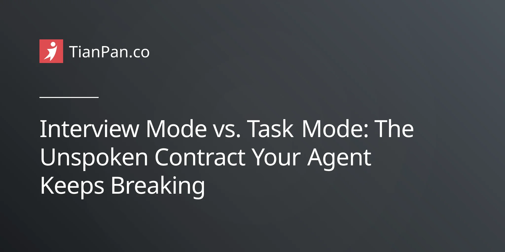 Every conversation with an agent operates in one of two implicit modes. Interview mode is the contract where the user expects the agent to extract requirements before doing anything substantive — clarifying questions are welcome, premature execution is the failure. Task mode is the contract where the user has already done the thinking, has a specific plan in mind, and expects the agent to execute on the available context, asking only when truly blocked — questions are friction, half-baked execution is the failure.
